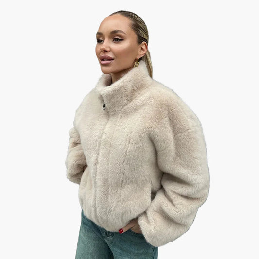 Damen Luxus Kurzfelljacke – Eleganter Streetstyle für den Winter