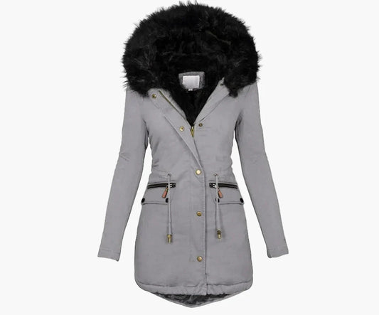 Damen Wintermantel mit Kapuze und Kunstfell – Eleganter, gefütterter Parka für kalte Tage