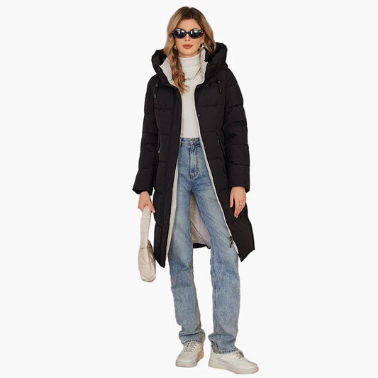 Damen Winter Steppmantel mit Kapuze – Langer, warmer Outdoor Parka für kalte Tage