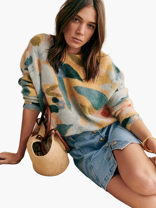 Damen Pullover mit künstlerischem Print und elegantem Stil für Herbst und Winter