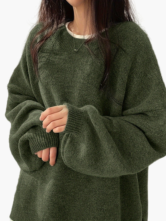 Damen Strickpullover mit Ballonärmeln und lockerem Schnitt – Modischer Freizeitlook für Herbst & Winter