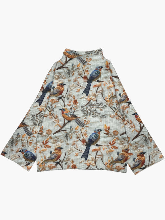 Damen Pullover mit Vogelmotiv und hohem Kragen – Eleganter Strickpullover für Herbst und Winter