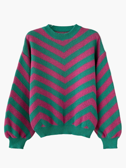 Damen Strickpullover im lässigen Oversize-Stil mit Streifen – Perfekt für Herbst und Winter
