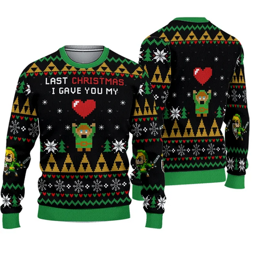 Herren Ugly Christmas Sweater – Retro Gamer Pixel Mario Pullover für Weihnachten & Gaming-Fans