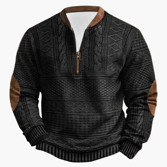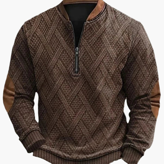 Herren Pullover im Vintage-Stil mit Stehkragen und Ellbogen-Patches – Modischer Freizeitpullover für Herbst und Winter