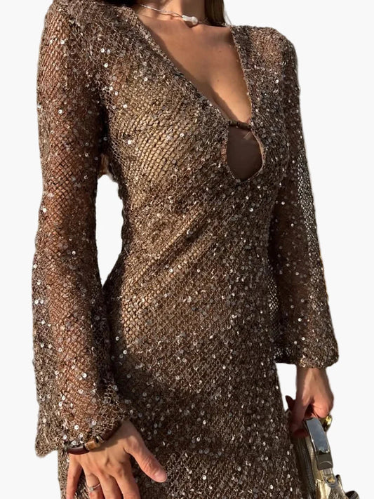 Damen Glitzer Abendkleid mit Pailletten und tiefem V-Ausschnitt – Elegantes Partykleid für besondere Anlässe