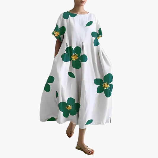 Damen A-Linien Maxikleid mit großem Blumenmuster – Modernes Freizeitkleid für Sommer & Urlaub