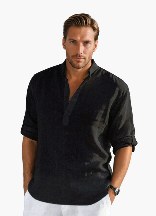 Herren Freizeithemd mit Stehkragen – Modernes Langarmshirt für Alltag, Büro & Sommer-Events