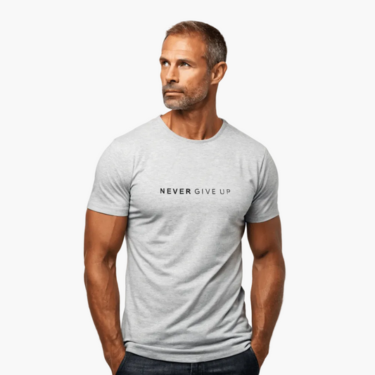 Herren Motiv T-Shirt mit Statement-Print "NEVER GIVE UP" – Modernes Freizeit- & Fitnessshirt