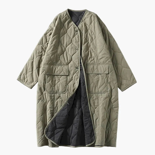 Women's quilted coat oversize, casual long jacket with buttons and pockets – perfect for autumn and winter