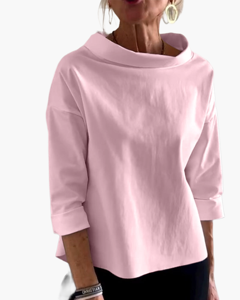 Women's Modern Top with High Collar and Three-Quarter Sleeves – Office & Everyday