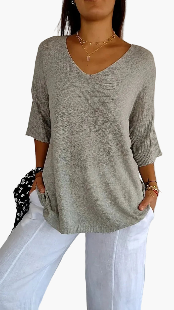 Damen Stricktop mit V-Ausschnitt – Lässiges Freizeit Oberteil im modernen Stil